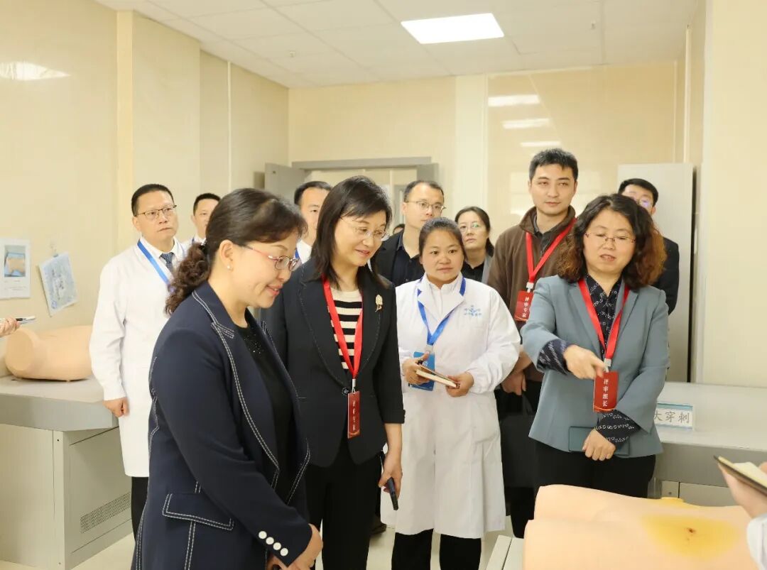 以遵义医药高等专科学校党委书记蒋红梅为组长的专家组按照《贵州省高等医学院校临床教学基地评审指标体系》,对医院基本条件、临床教学管理、临床教学实施进行系统评审。 专家组查阅科室管理台账、教学记录等资料,实地考察临床技能实训中心、病房、教学管理区域等场所,并通过理论测试、实践考核、个别访谈等多种方式,对医院的教学条件、管理流程和培训质量进行了全面评估。